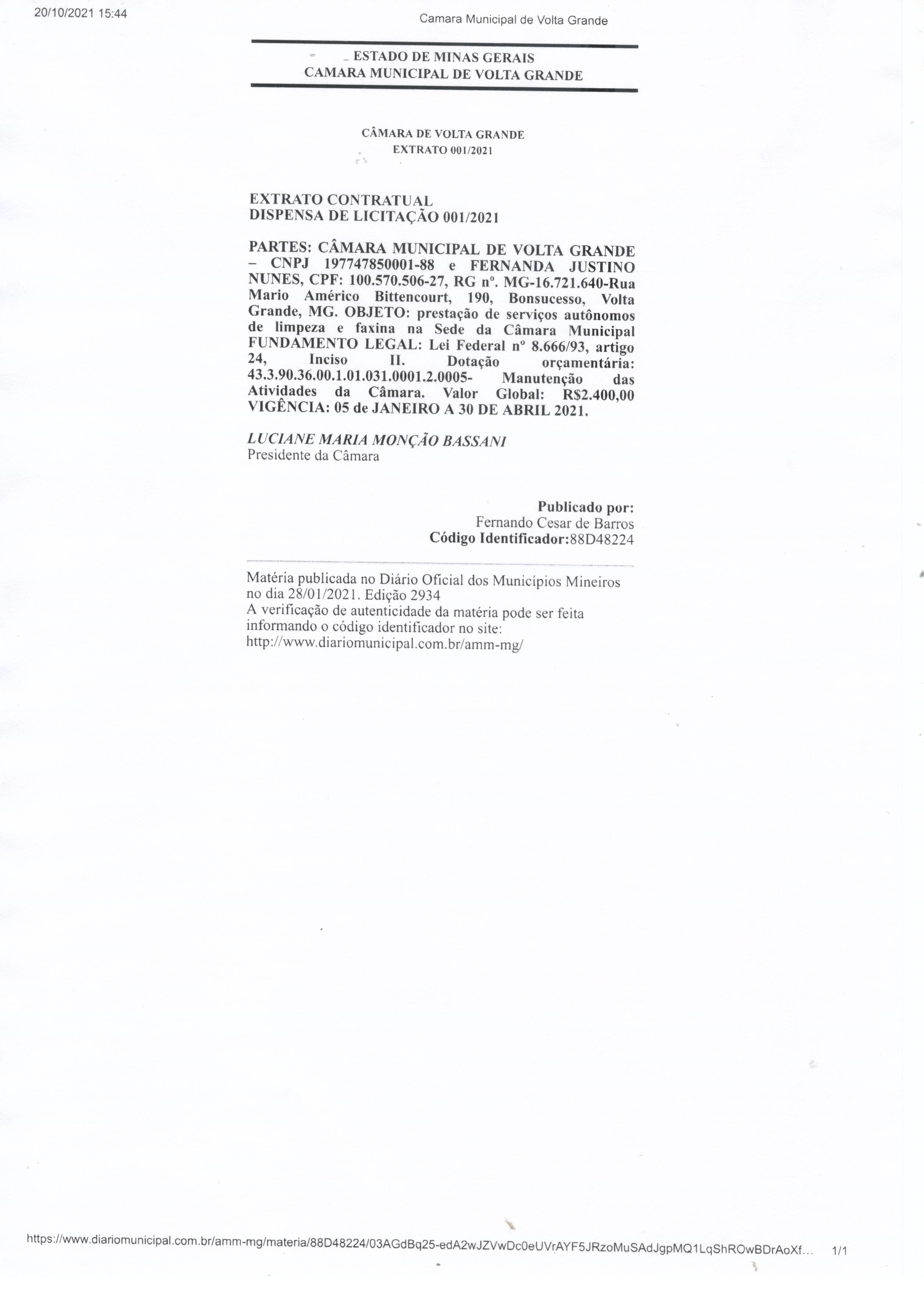 EXTRATO CONTRATUAL DISPENSA FERNANDA JUSTINO