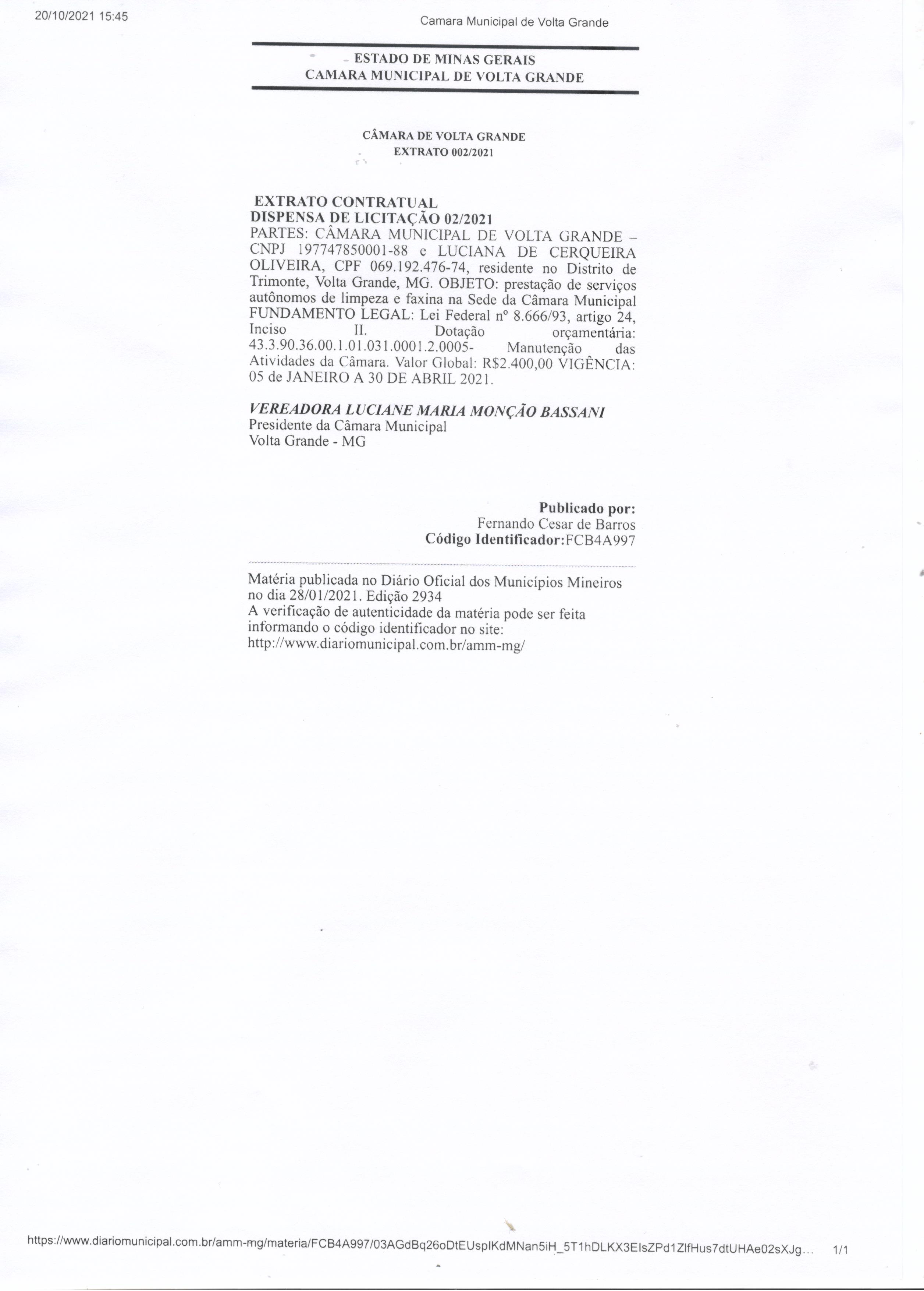 EXTRATO CONTRATUAL DISPENSA LUCIANA DE CERQUEIRA