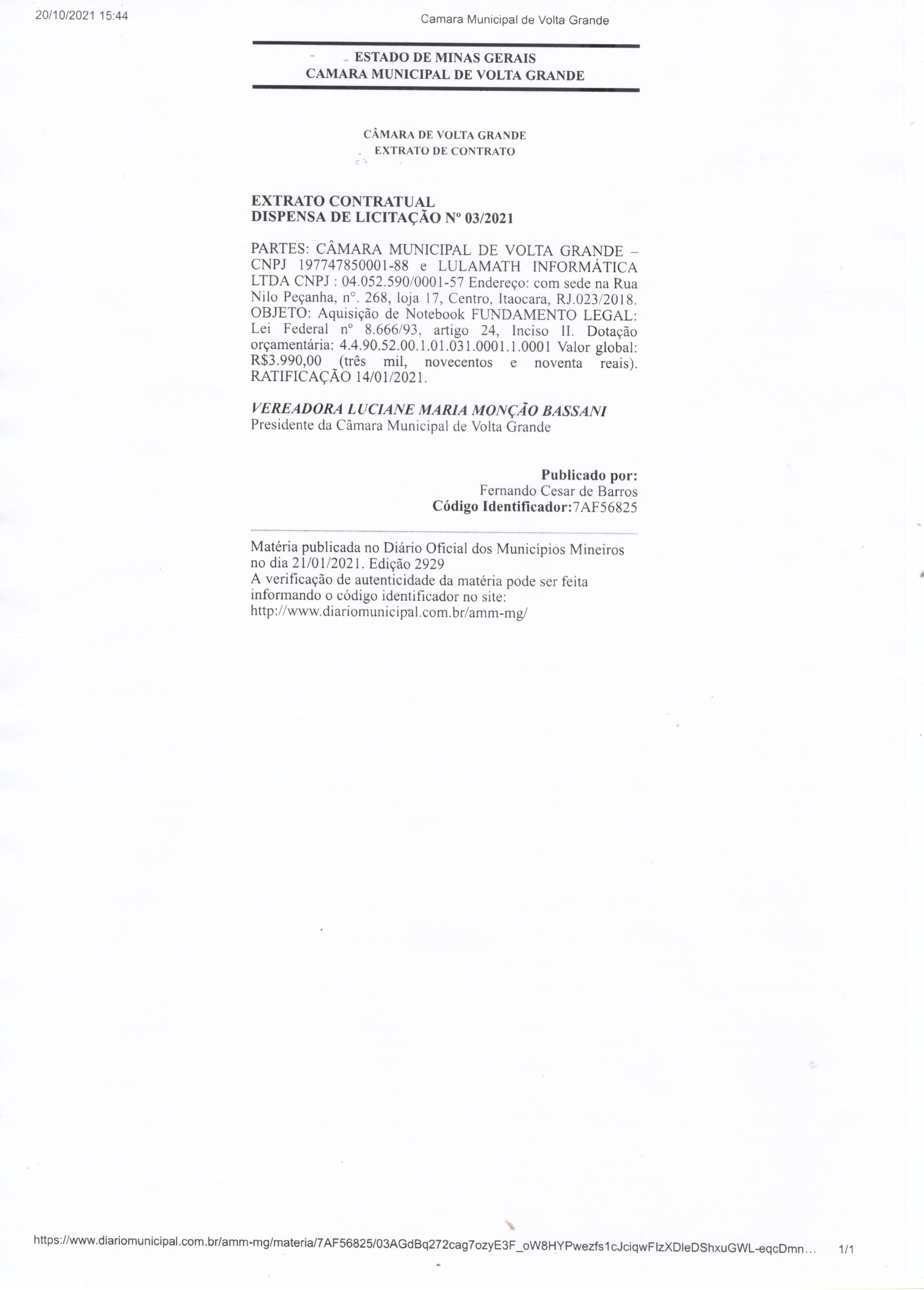 EXTRATO DE CONTRATO DISPENSA LULAMATH INFORMÁTICA