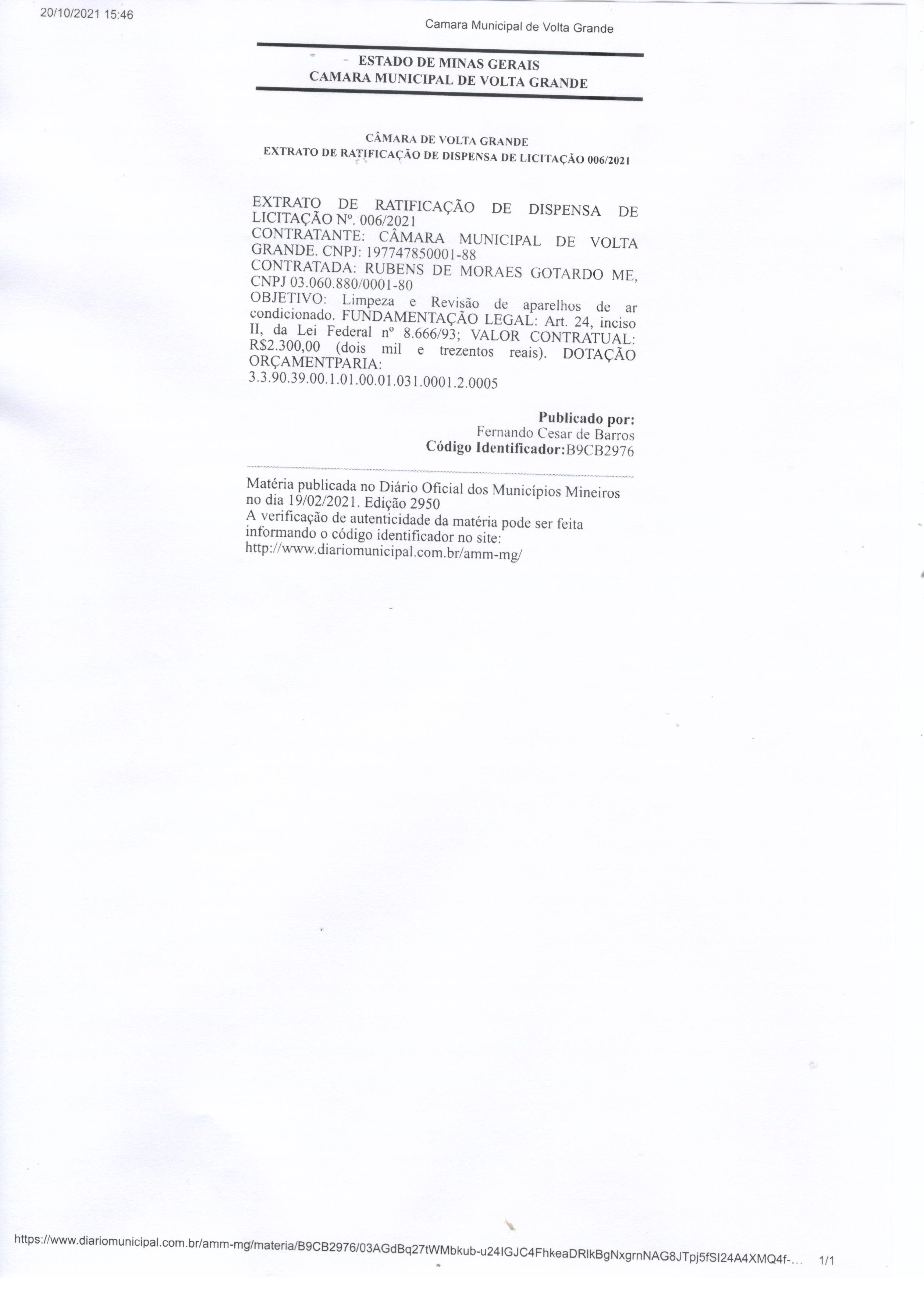 EXTRATO RATIFICAÇÃO DE DISPENSA RUBENS DE MORAES GOTARDO ME.jpeg